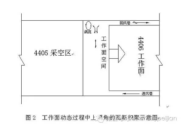 1、井生產(chǎn)過程中,采煤工作面上隅角作為采空區(qū)漏風(fēng)的交匯點(diǎn)和生產(chǎn)中不斷暴露的新鮮煤壁擴(kuò)散出來的大量瓦斯,在上隅角處形成渦流,造成瓦斯積聚。